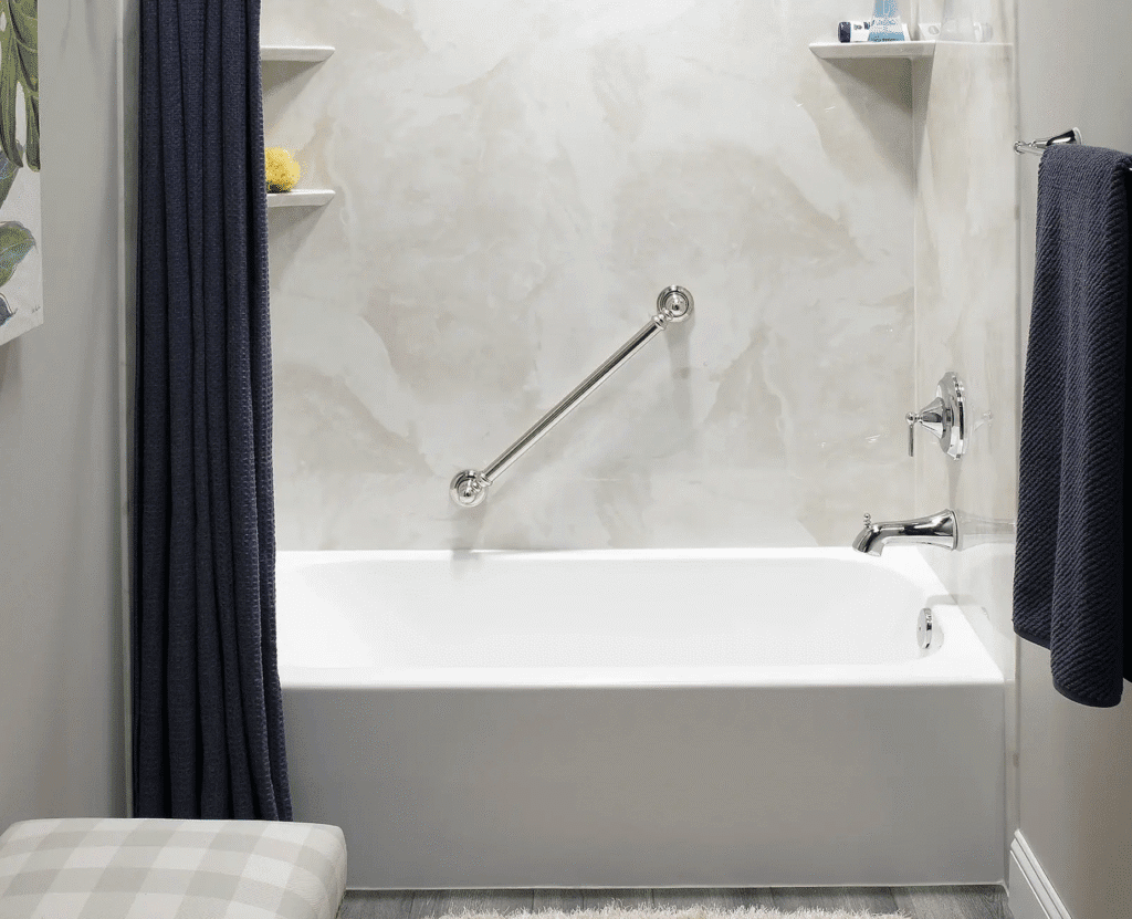 While tile has a classic appeal, it’s no longer the only premium choice. Curtis explained that “this is no longer the case as modern wall systems now offer the look of stone or marble without the hassle of grout.” These sleek, durable panels are also easier to clean, offering style without the stress.