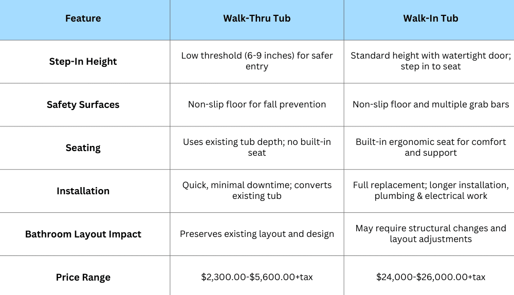 Walk-Thru Tubs vs. Walk-In Tubs in Ottawa: Complete Guide to Safety, Comfort, and Costs